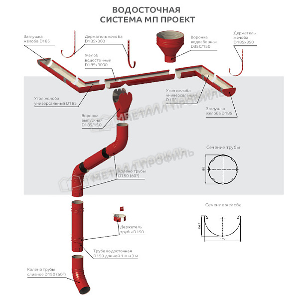 - Основа из стали не позволяет Заглушка желоба МЕТАЛЛ ПРОФИЛЬ ПРОЕКТ D185 Ral 7024 ржаветь.